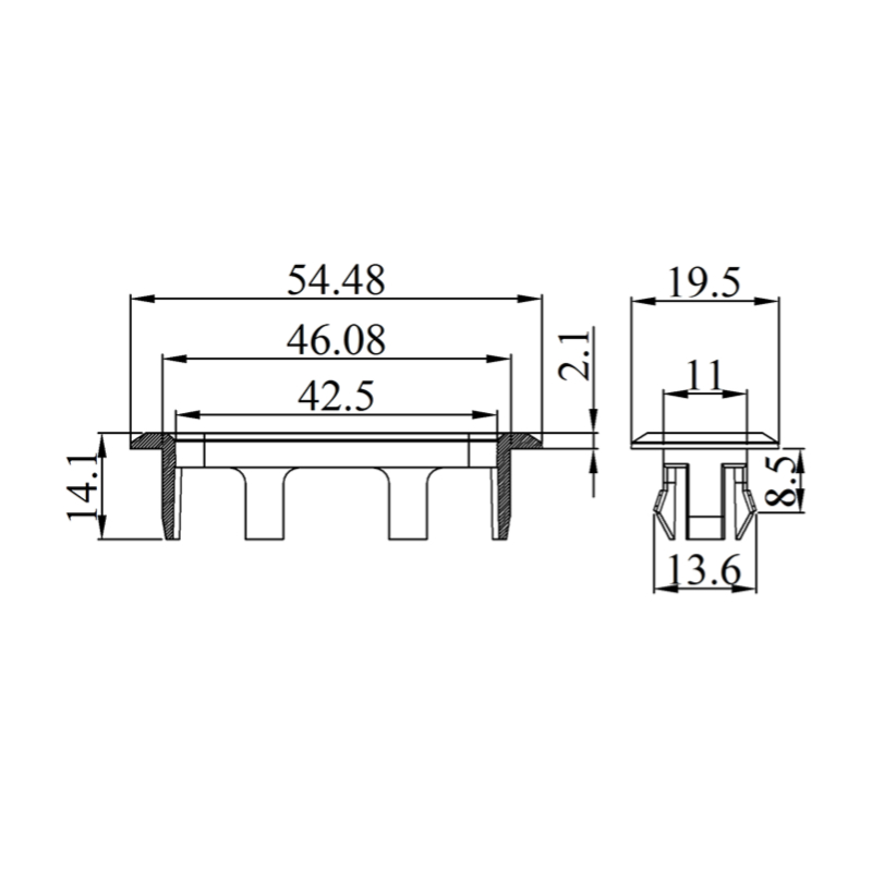 This overflow cover is suitable for rectangular basin overflow holes measuring 46 mm in length and 13 mm in width.