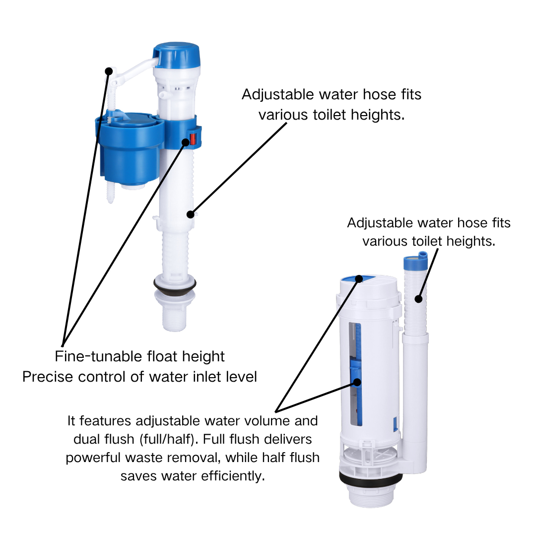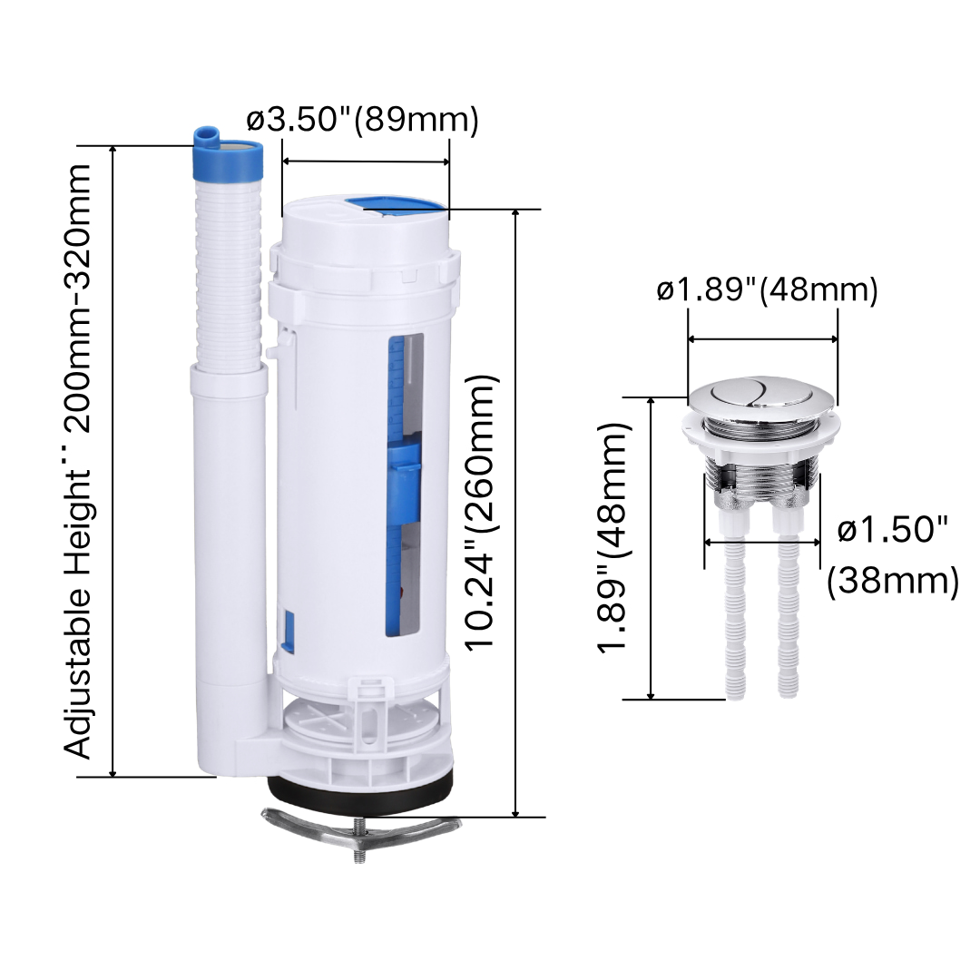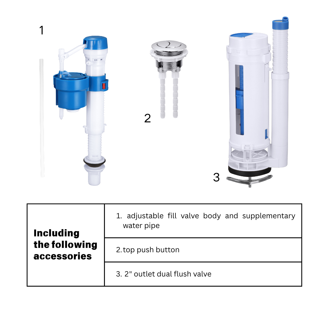 Product Name: Universal Toilet Fill Valve and Dual Flush Valve Kit Adjustable Height 2 Inch Outlet For One Piece Toilet